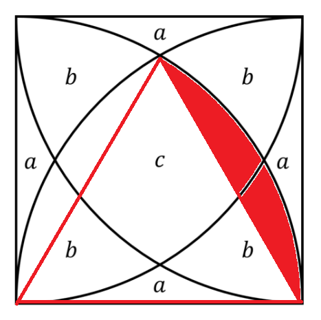 Take a square of side length 1 unit and draw four quarter circles within the square, each with