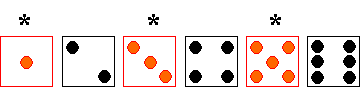 The dice with an asterisk are the ones used for that particular