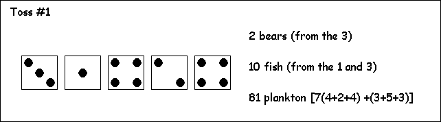 fish on 5 dice = 30 fish) All sixes